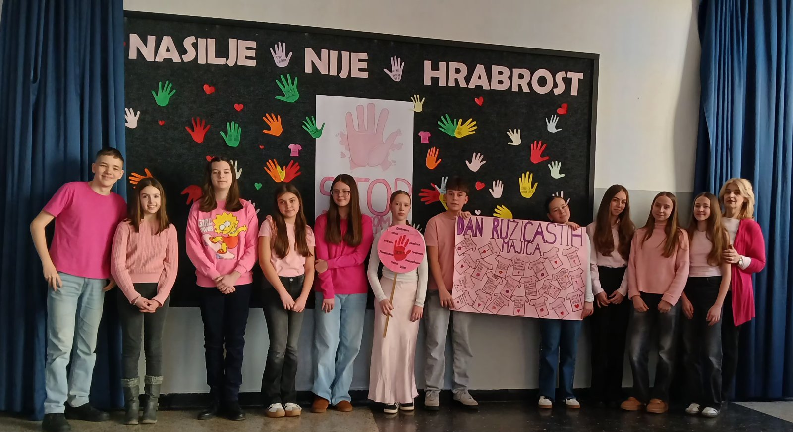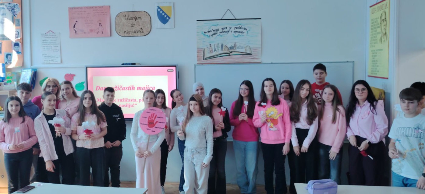 Učenici su imali priliku razvijati empatiju, učiti o međusobnom poštovanju i uvažavanju različitosti, te prepoznati značaj nenasilne komunikacije i podrške vršnjacima. Simboličnim nošenjem ružičastih majica poslali su jasnu i snažnu poruku – zajedno smo protiv nasilja i za školu u kojoj vladaju razumijevanje, prihvatanje i prijateljstvo.