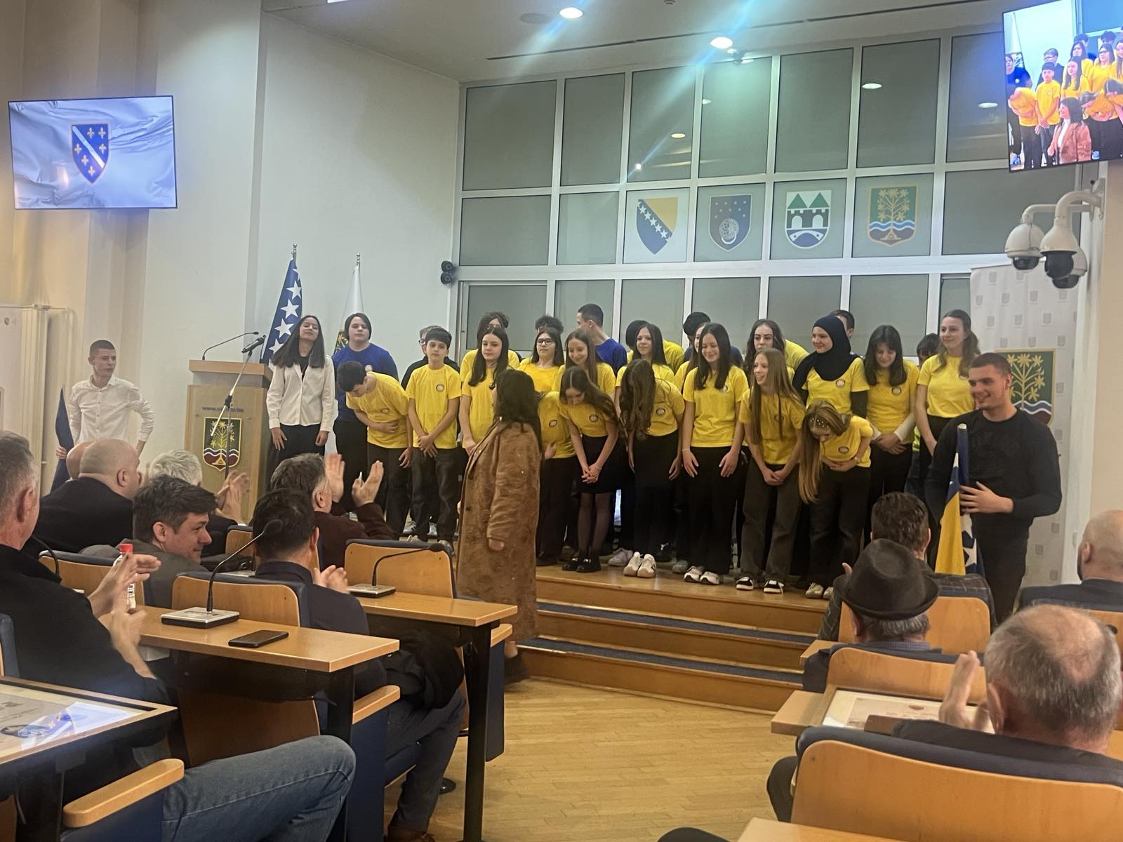 Naši učenici predstavili su se izvedbom pjesme „Studen vodo“, dostojanstveno i emotivno obilježivši ovaj važan datum. Njihov nastup bio je ispraćen toplim aplauzom prisutnih, koji su prepoznali trud, posvećenost i umjetnički izraz mladih izvođača.