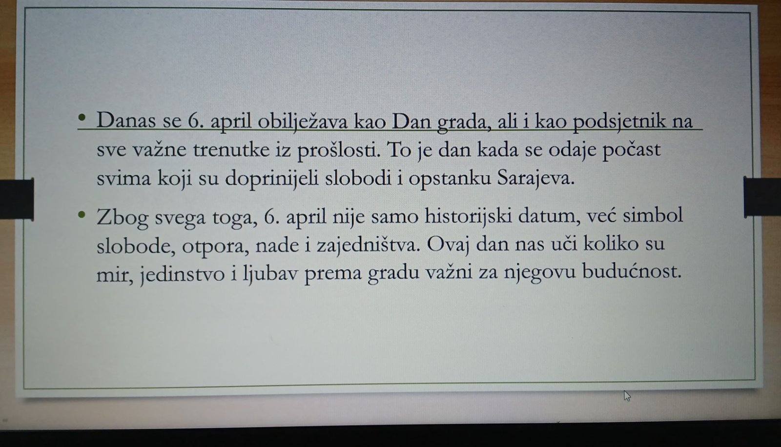 Kroz razgovor su isticali značaj obilježavanja ovog datuma, te su na njima primjeren način upoznati sa historijskim značajem 6. aprila za grad Sarajevo.