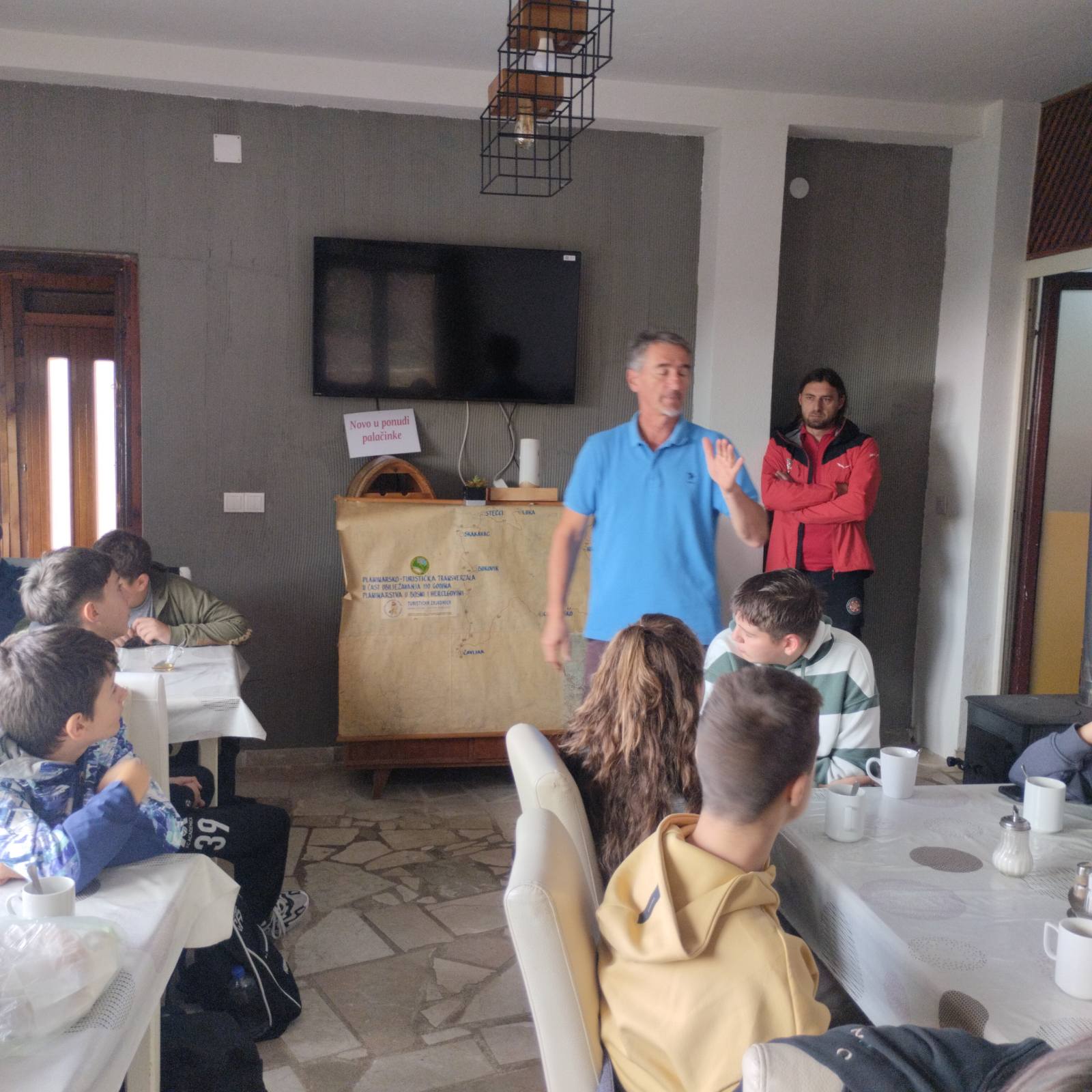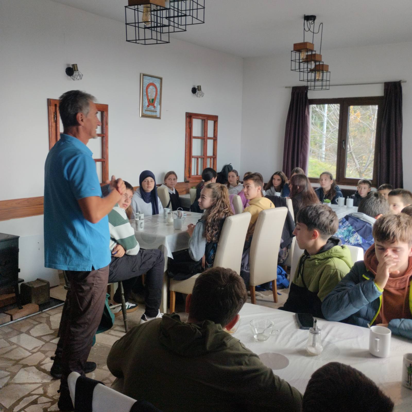 Nakon uvodnog upoznavanja sa domaćinima, historijatom planinarskog društva i zajedničkog doručka, učenici su uz pomoć vodiča iz gorske službe spašavanja, učili o planinarenju, markaciji planinarskih ruta, planinarskoj opremi i načinu spašavanja stradalih i povrijeđenih planinara.